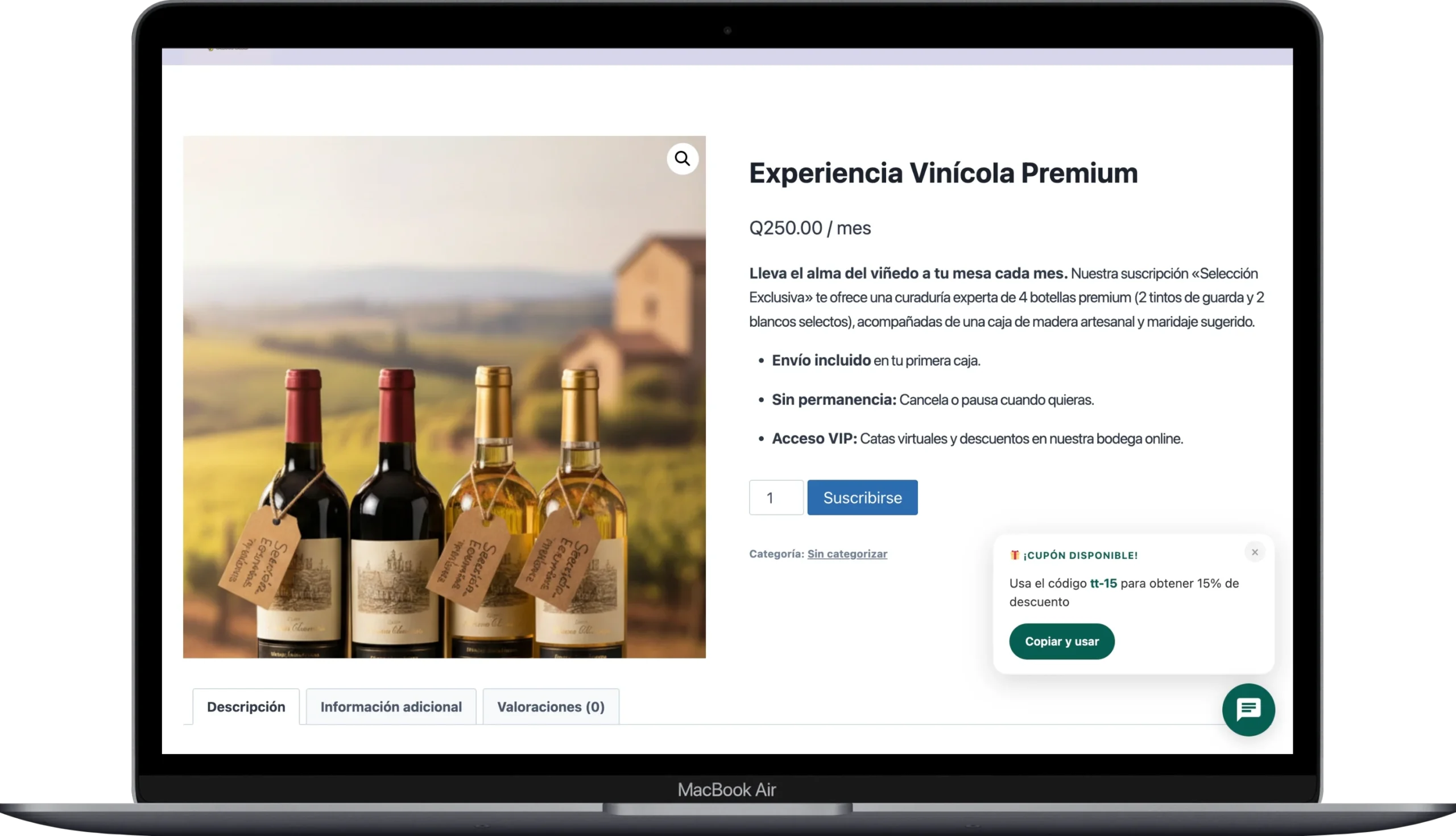 4 plugins premium de WooCommerce con una sola licencia. Chat con inteligencia artificial, sistema de suscripciones y registro de miembros. Todo integrado.