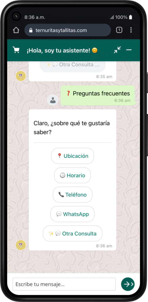 Búsqueda Inteligente y Contextual: Comprende preguntas de seguimiento como «y en azul?», encontrando exactamente lo que el cliente necesita. 495_ec3784-9c> |